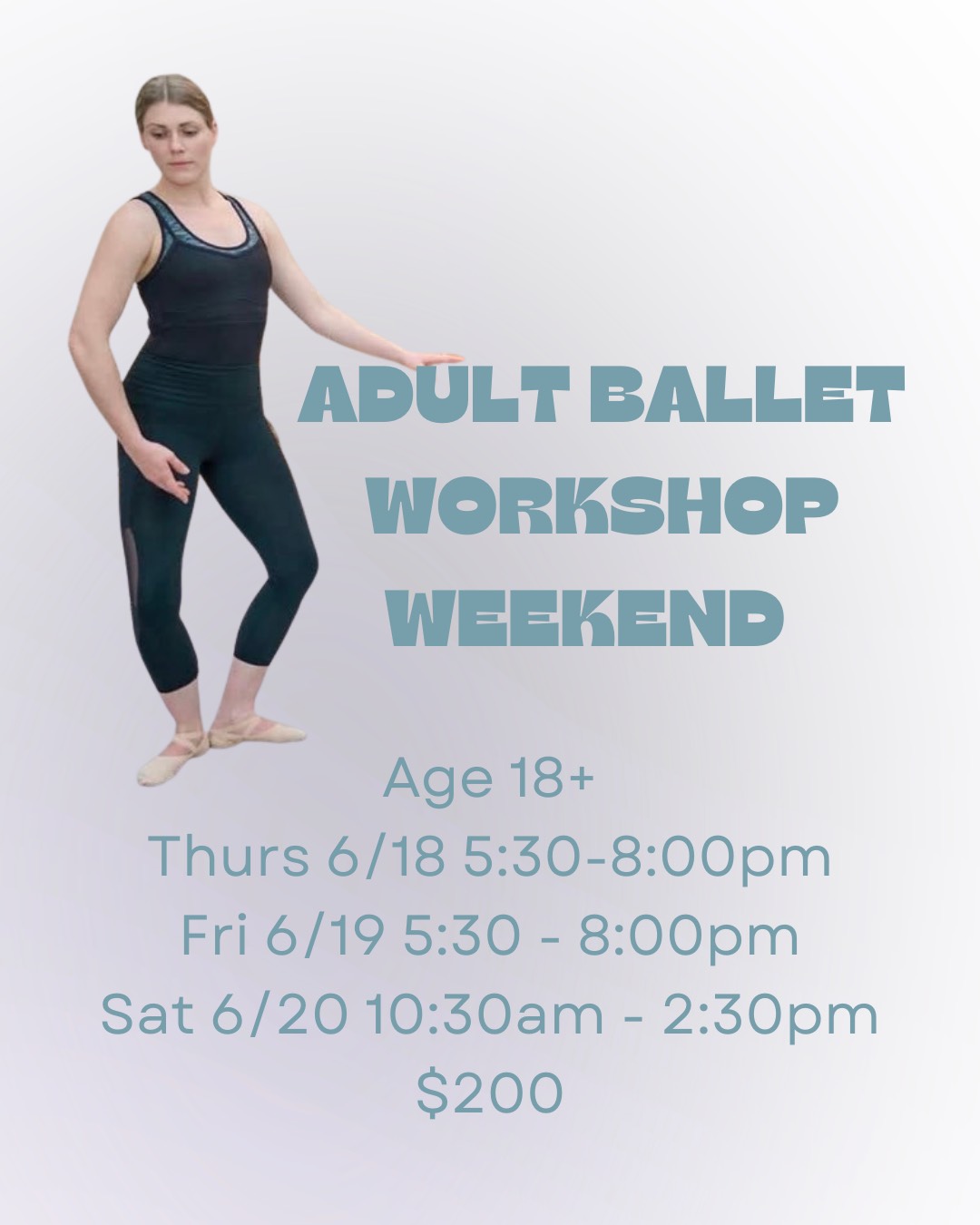 Join us for an Adults only workshop weekend with ballet each day as well as enrichment classes such as contemporary and variations.